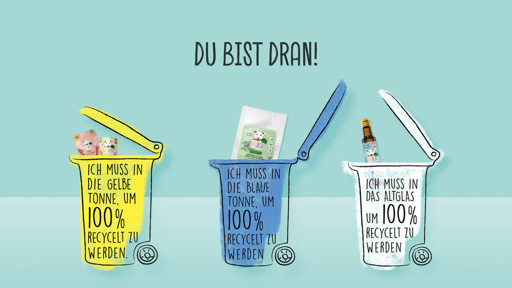 Come avrete capito, non è solo fondamentale che noi produttori scegliamo consapevolmente l'imballaggio giusto. È anche fondamentale smaltire correttamente l'imballaggio dopo l'uso, in modo che possa essere reinserito nel ciclo di riciclaggio nel modo migliore possibile. Ed è qui che entrate in gioco voi: sui nostri prodotti vi mostriamo come smaltire correttamente l'imballaggio dopo l'uso. I rifiuti non sono solo rifiuti! Ci sono ancora risorse dietro che devono essere utilizzate nel miglior modo possibile. Facciamolo insieme!