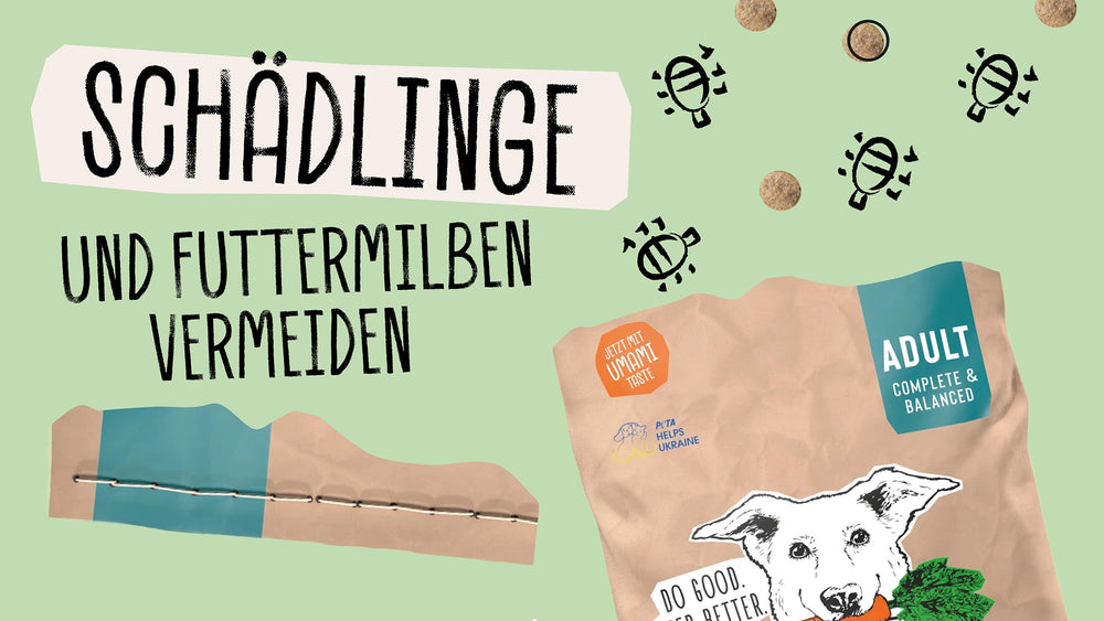 Un pericolo spesso trascurato quando si conserva il cibo per cani è l'infestazione di tarme e acari del cibo. Questi parassiti possono insediarsi nel cibo se non viene conservato correttamente. È quindi importante conservare il cibo in contenitori ermetici per tenere lontani gli ospiti indesiderati e proteggere il cane. Va inoltre ricordato che l'infestazione da acari degli alimenti è possibile solo dopo l'apertura della confezione.
