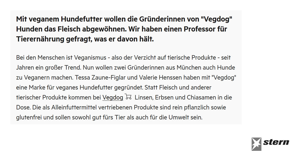 Bei Presseanfragen wenden Sie sich gerne per Email an: presse@vegdog.de