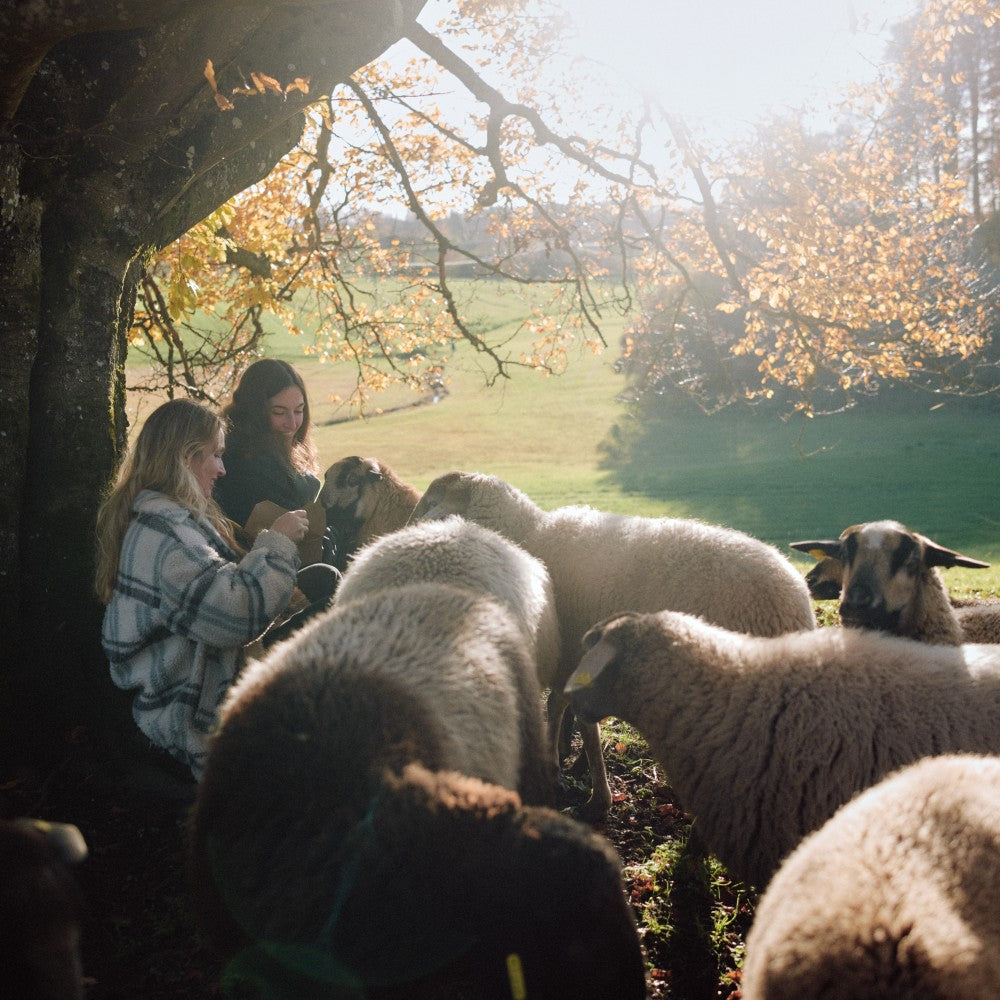 VEGDOG- Gründerin Tessa war schwanger, als sie auf einem Spaziergang eine Gruppe Mutterschafe entdeckte, die zum Schlachter sollten.