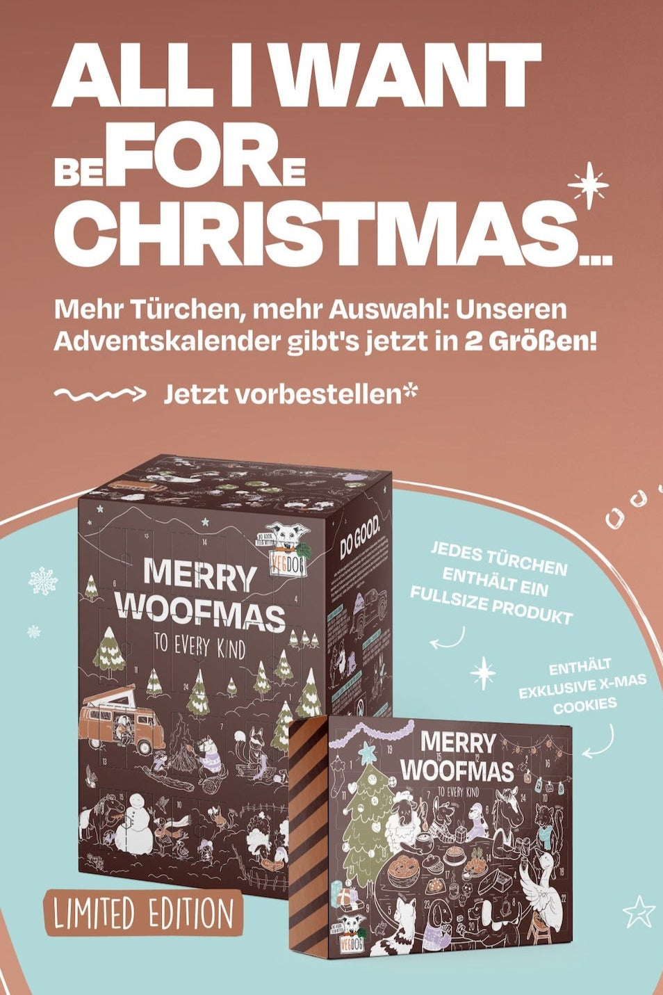 E poiché anche l'ambiente è importante per noi, Santa Paw ha creato un laboratorio in Germania per garantire che il calendario arrivi a voi e al vostro cane senza lunghi percorsi di trasporto. Inoltre, è realizzato al 100% in carta per un bilancio ecologico ancora migliore e può essere facilmente riciclato dopo i giorni del Woofmas.