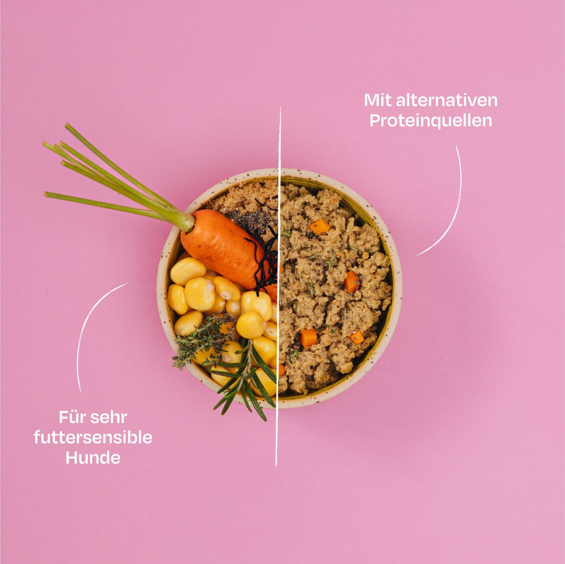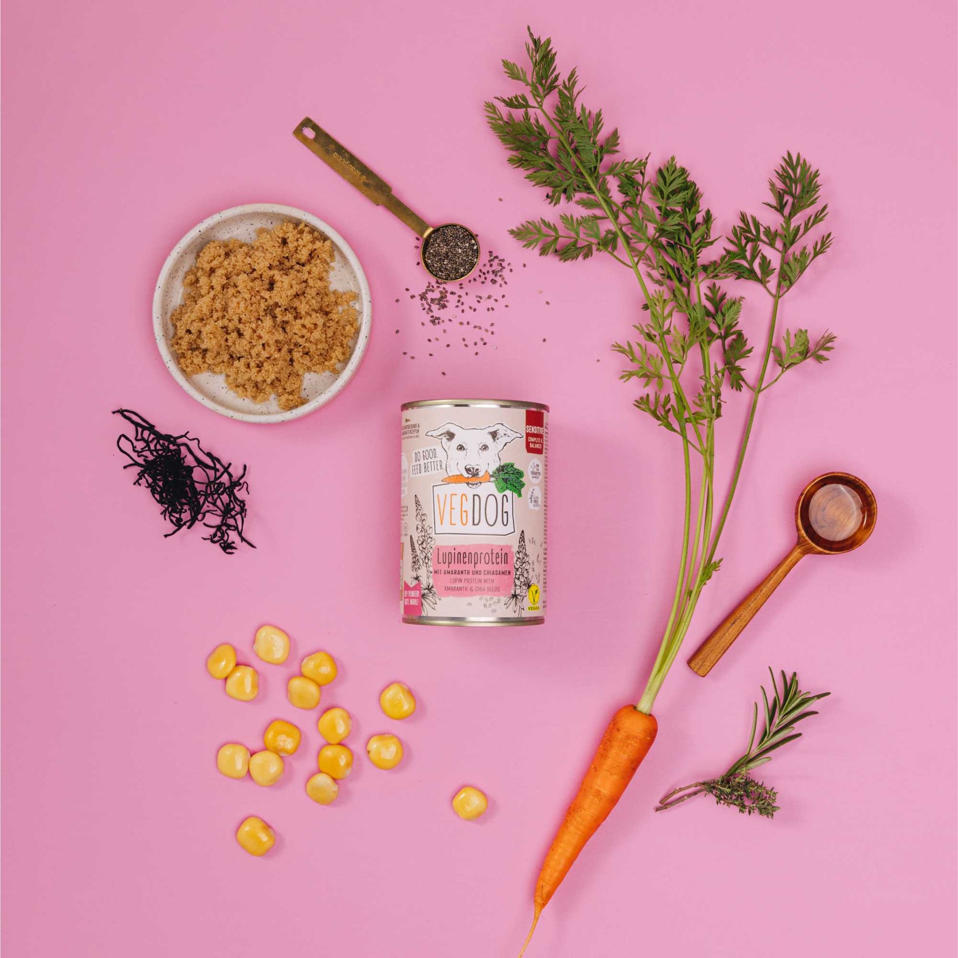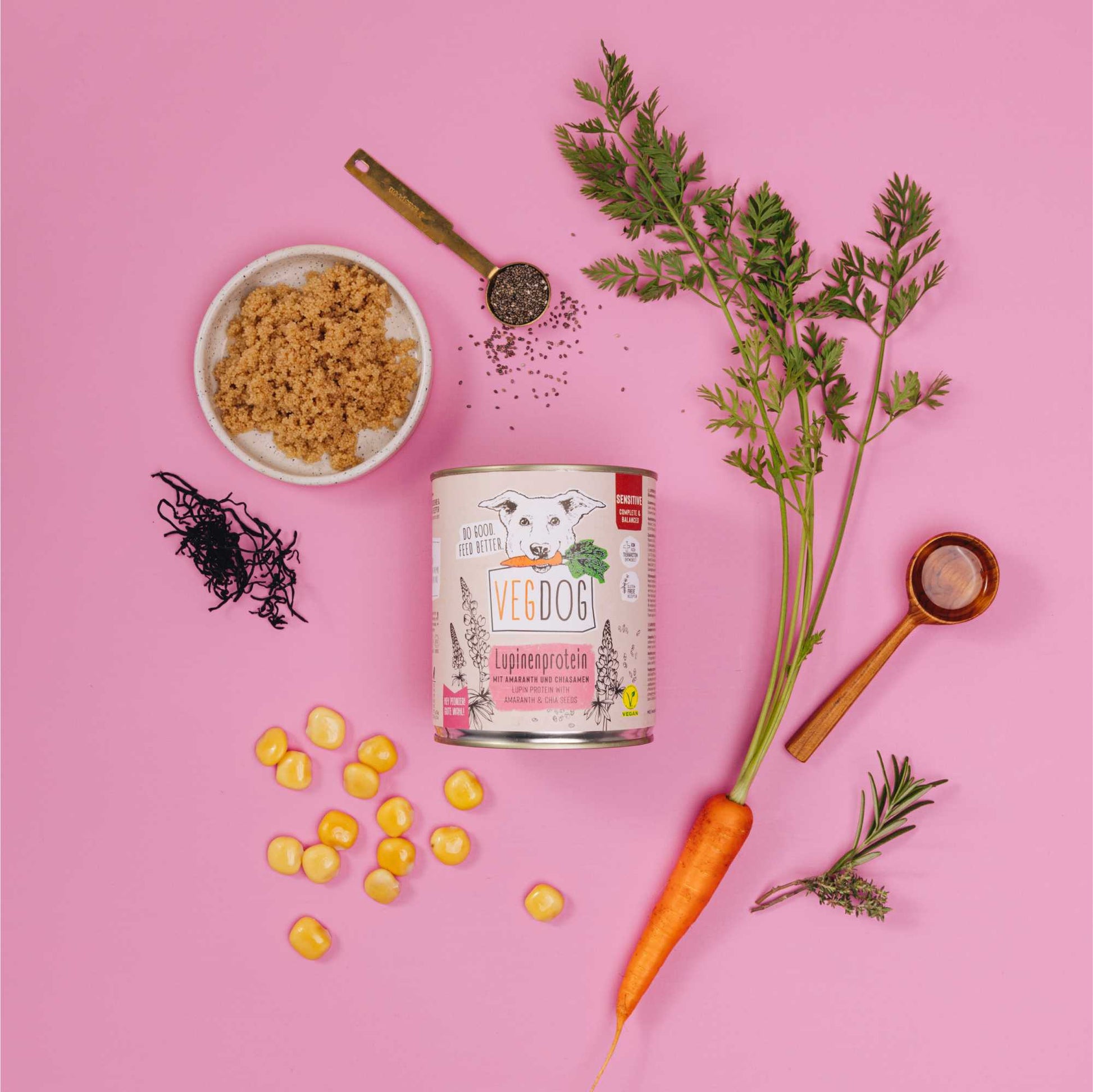 I nostri prodotti contengono tutta la potenza delle piante! Lenticchie, piselli, lupini e altro ancora apportano proteine ai nostri prodotti e favoriscono una sana funzione muscolare del cane