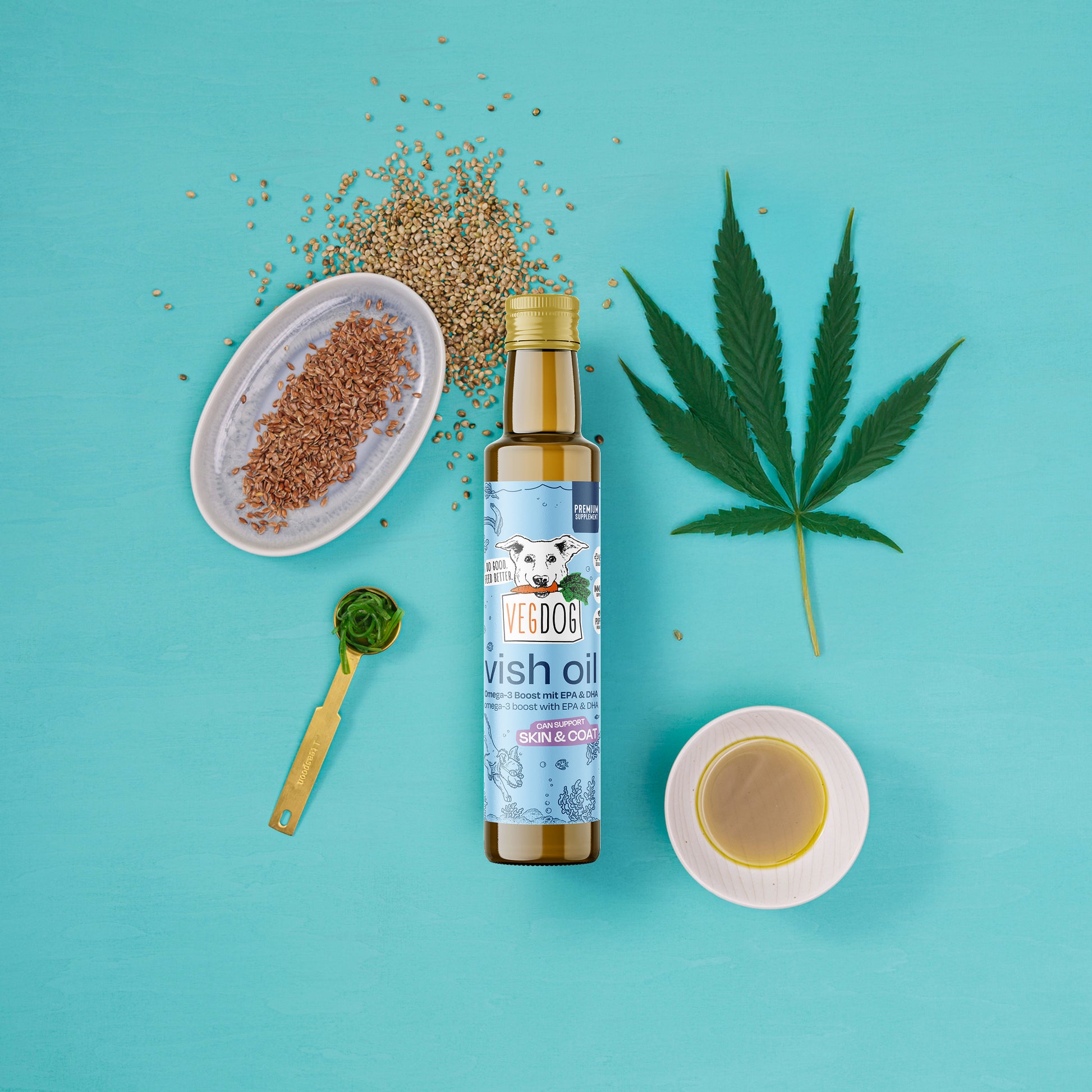 VEGDOG VISH OIL- Una combinazione di olio di canapa, di semi di lino e di alghe