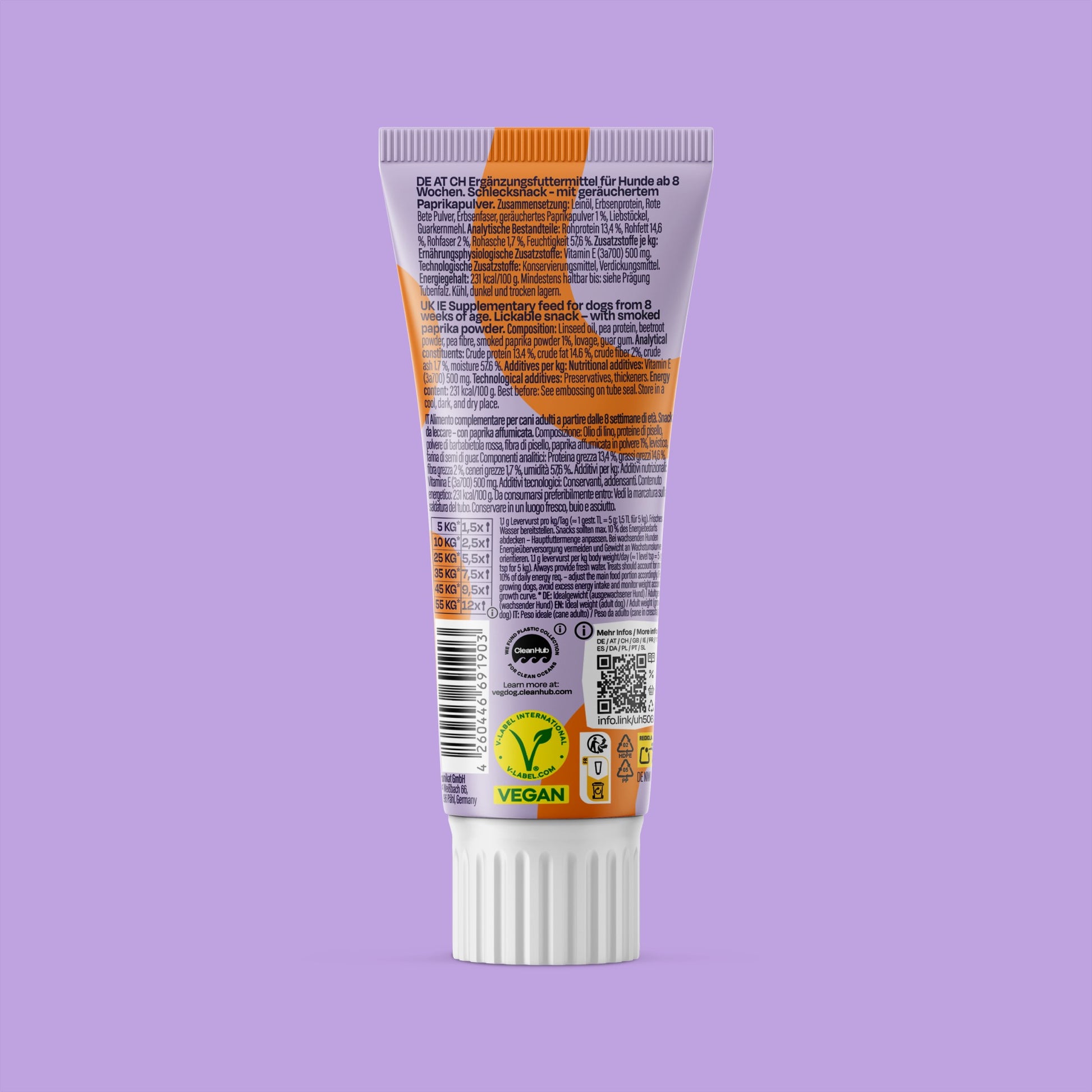 Leinöl, Erbsenprotein, Rote Bete Pulver, Erbsenfaser, geräuchertes Paprikapulver 1 %, Liebstöckel, Guarkernmehl