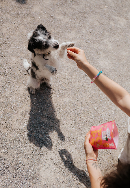 Un mini snack divertente e a basso contenuto di grassi. Ideale come spuntino efficace per l'allenamento, con meno di 1 kcal per pezzo, o come ricompensa croccante e leggera tra un pasto e l'altro, anche per gli anziani e i cani con problemi di masticazione. Quindi: spuntino senza rimorsi. (Lo sappiamo, sembra quasi troppo bello per essere vero).